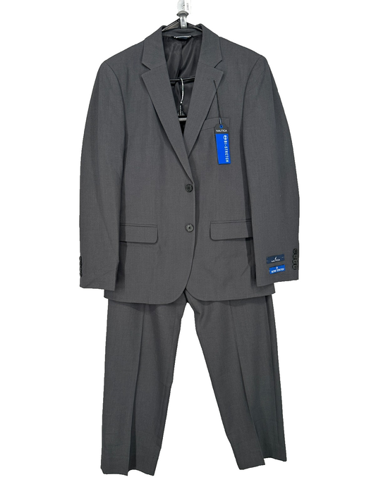 Nautica Men’s 2-Piece Suit 40R Jacket/32x32 Pants Charcoal Modern Fit Bi-Stretch